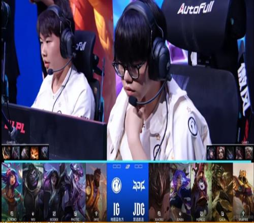 BP階段:(第一局JDG選擇首ban首選,iG則是選擇藍色)