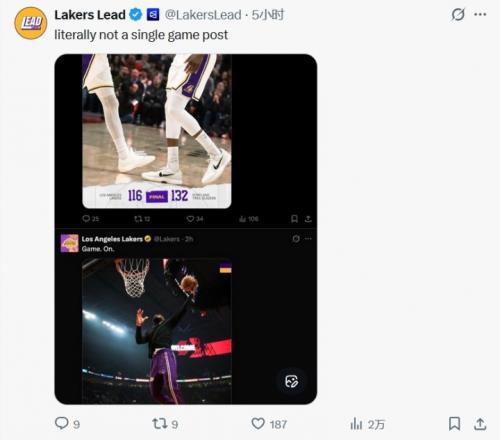 這活真好干!湖人官推今日比賽3個小時時間內啥動態也沒發遭吐槽