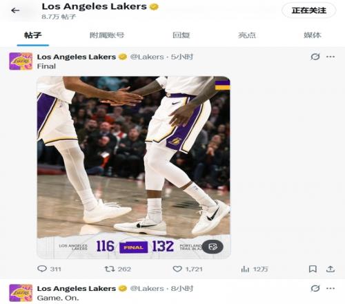 然而在接下來直到比賽結束的三個小時時間內,湖人官推再未發布任何一條動態。