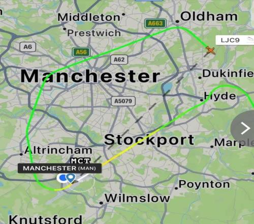 但據(jù)《太陽報(bào)》報(bào)道,在降落前,格伊的飛機(jī)遇到了突發(fā)狀況,原定的降落計(jì)劃臨時(shí)取消,飛機(jī)飛越曼徹斯特機(jī)場后在市中心盤旋。