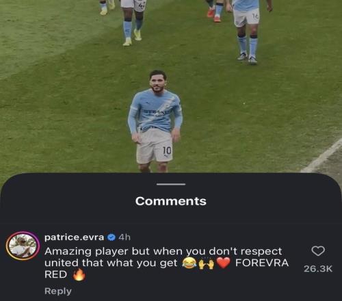 在一條相關的社媒帖子下,埃弗拉寫道:“他是一名非常有天賦的球員,但如果你不尊重曼聯,那結果往往就是這樣。永遠的紅魔。”