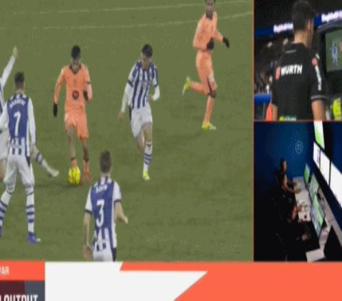 第87分鐘,索萊爾戰(zhàn)術(shù)犯規(guī)放鏟佩德里,裁判出示黃牌,隨后回看VAR發(fā)現(xiàn)鏟到對方腳踝,于是改判直接紅牌,皇家社會剩下10人作戰(zhàn)。