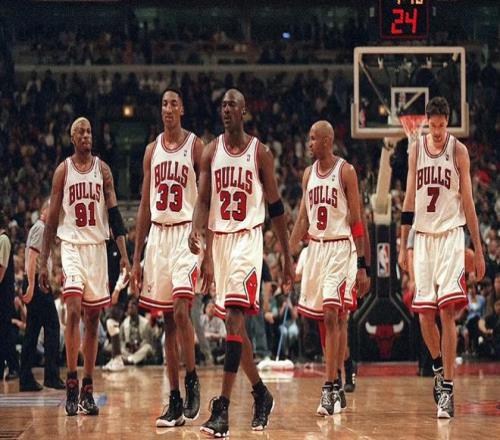 如果要給這幾支王朝球隊進行一個排名,那么公牛毫無疑問要在第一名的位置。在那個諸神混戰的年代,喬丹和公牛的存在,真的是直接埋沒一代的超巨球員。