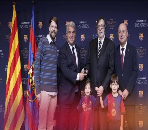 根據巴塞羅那俱樂部官方消息,2026年金徽章的首次頒發儀式已經舉行,巴薩主席拉波爾塔、董事何塞普為37位效力俱樂部滿50年的會員授勛。