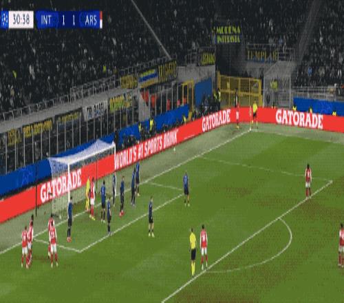 開(kāi)場(chǎng)后,阿森納反客為主,完全壓制主隊(duì)。前10分鐘,槍手已經(jīng)完成5次射門(mén),而國(guó)米還沒(méi)進(jìn)入比賽節(jié)奏。第10分鐘,廷貝爾掃向中路,熱蘇斯前插破門(mén),阿森納1-0率先打破僵局。