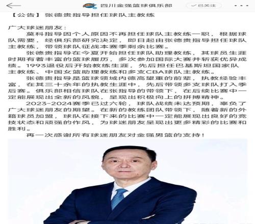 在CBA,張德貴執(zhí)教過包括山西、福建、北控、四川、天津等球隊,而且多數(shù)情況是作為“救火教頭”上陣,“上上下下”“上了又下下了又上”成了張德貴最近幾年在CBA的關(guān)鍵詞。
