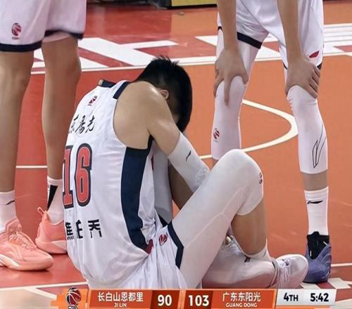 昨晚還有一個畫面,個人覺得不對勁。比賽戰至末節還剩5分42秒時,焦泊喬被隊友胡明軒絆倒,前者顯然是扭了腳,倒地后一度沒有起來,最后被隊友扶著單腳跳出場外。焦泊喬倒地后,等吉林進攻回合完成后,裁判吹停了比賽,此時焦泊喬還未起來,附近的隊友王少杰和奎因紛紛前去看望焦泊喬,關心他的傷情。而絆倒焦泊喬的胡明軒卻漠不關心,抱著球揚長而去。雖然我是廣東球迷,也要對胡明軒這種冷漠的態度進行批評。