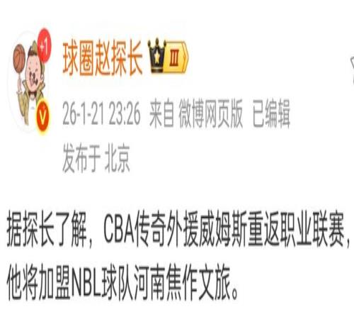 根據媒體人報道,前廣東宏遠的超級外援威姆斯正式重返球場,他會加盟NBL焦作男籃,他們的前身是河南男籃,而這支球隊的負責人是CBA名將李根,威姆斯和李根攜手,目標就是幫助球隊沖擊季后賽。