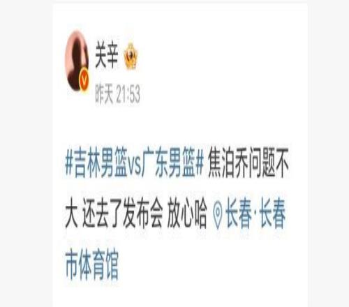 傷退的焦泊喬能出戰山西隊比賽嗎球迷十分擔憂,關辛給出答案