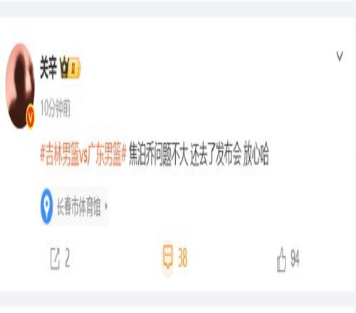 好消息是,焦泊喬的腳傷問題不大,賽后關辛第一時間發布報道,表示焦泊喬問題不大,還去了發布會。
