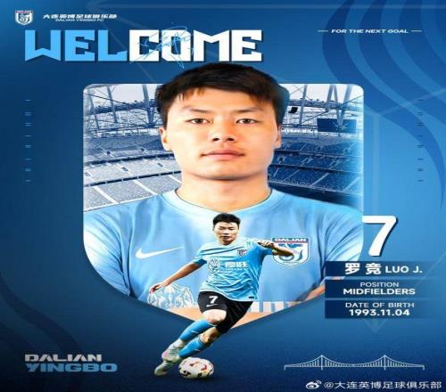 經與球員本人協商一致,球員羅競正式加盟大連英博足球俱樂部。