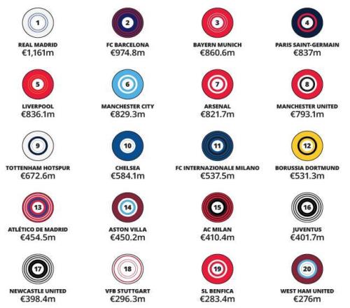 金錢聯賽:皇馬笑傲世界,英超壟斷第二梯隊