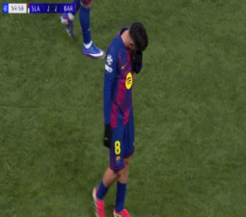 在今天凌晨歐冠巴薩4-2擊敗布拉格斯拉維亞的比賽第61分鐘,佩德里受傷被奧爾莫換下。