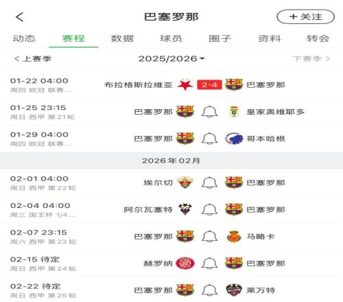 未來一個月,巴薩將面臨西甲、歐冠、國王杯三線作戰。如果巴薩未能在歐冠直通16強,佩德里也可能錯過歐冠淘汰賽附加賽的首回合比賽(2月17-18日)。