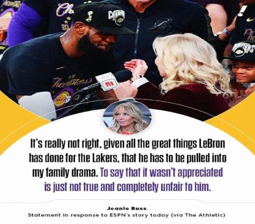 “考慮到勒布朗為湖人做出的卓越貢獻,把他卷入我的家族糾紛這實在不應該。那些說他未受尊重的言論絕非事實,對他而言也完全不公平。”