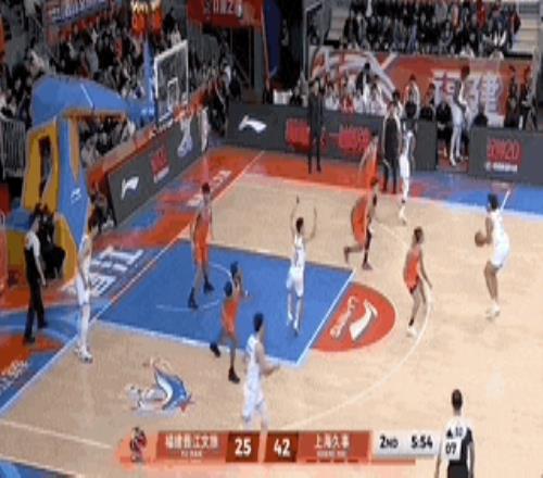 易邊再戰,李弘權和洛夫頓合砍8分,上半場沒有亮相的古德溫在這一節登場,上來就給王哲林送出妙傳,上海隊打出一波攻擊高潮,把分差又一次拉開到了16分。