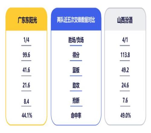 廣東隊近期取得兩連勝,暫居聯(lián)盟第三。山西隊在上一輪不敵深圳后,位列第八。回顧雙方上次交手,廣東隊在激烈對抗下利用極具壓迫力的防守成功限制住了對手外線火力,最終依靠集體力量頂住反撲,客場拿下勝利。此番再戰(zhàn),山西隊在首回合失利且張寧和焦海龍缺陣的情況下想必會做出針對性調(diào)整,再度出擊,廣東隊需慎防對手變陣,充分準(zhǔn)備,做好應(yīng)變。