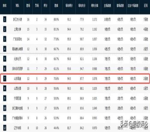 山東男籃目前的戰(zhàn)績(jī)?yōu)?2勝5負(fù),排在積分榜第7位置。