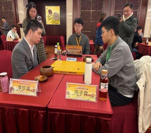 面對李欽誠,山東銀豐的周子弈六段執白棋采取搏命戰術。關鍵時刻,棋高一著的李欽誠憑借敏銳的棋感和精確的計算,快一氣逃出中腹棋筋,并利用白棋自身缺陷反手做活了被圍黑棋,一舉確立勝勢。