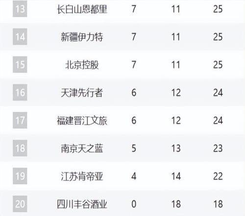 13-20分別是吉林、新疆、北控、天津、福建、同曦、江蘇和四川。吉林兩連敗,他們的排名持續(xù)下滑。新疆兩連勝,后續(xù)的賽程還不是很難,他們有希望繼續(xù)提升戰(zhàn)績(jī),畢竟攻守都回暖了,不排除第一階段結(jié)束進(jìn)入前12的可能性。北控兩連敗,剛爆發(fā)一場(chǎng),又開始低迷了。天津和福建這輪都輸球了,但他們落后前面三支球隊(duì)就只差一場(chǎng)。同曦已經(jīng)三連敗,如果只是靠著郭昊文太難了。江蘇最近開始起勢(shì)了,最近10場(chǎng)獲得3場(chǎng)比賽。至于四川,已經(jīng)18連敗了。