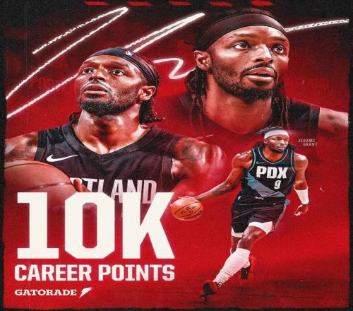 本場(chǎng)比賽,格蘭特在進(jìn)行到第二節(jié)時(shí)已經(jīng)收獲了3分1籃板,職業(yè)生涯總得分達(dá)到了10000分,解鎖了“萬分先生”的里程碑。