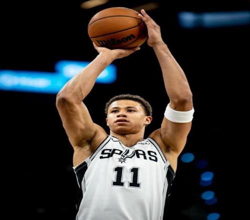 而且,他的防守潛力,早在NCAA時期,就已經展露無遺,能夠從1號位防守到4號位,橫移速度不遜色于后衛,防守的預判意識也是極佳,這也是得到了所有球探的認可。不僅如此,他在大學時期,三分命中率保持在了37.1%,所以攻防兩端,他的能力和潛力都是有的,完全符合小球時代的要求,有成為頂級3D側翼的潛質,這是馬刺隊選中他的重要原因。