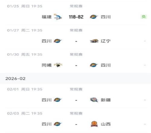 本場失利后,四川本賽季已經遭遇19連敗,還未取得一場勝利,接下來他們將先后對陣遼寧、同曦、新疆和山西。