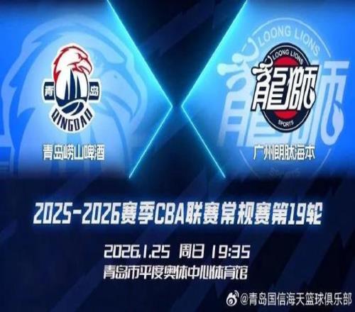 今晚19:35,2025-2026賽季CBA聯賽常規賽第19輪,青島嶗山啤酒回到主場迎戰廣州朗肽海本。