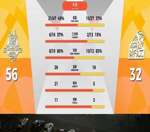 半場打完,山東在鮑威爾、陶漢林、克里斯合砍42分的帶領下,取得56-32領先廣廈,幾乎可以說是完全碾壓廣廈!得分籃板助攻搶斷,數據全面領先廣廈,胡金秋正負值-25,孫銘徽-29,布朗毫無狀態,廣廈三巨頭合計僅得7分。
