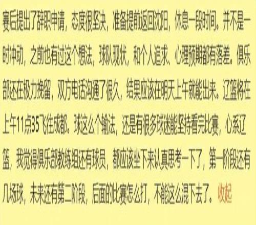 據悉,在楊鳴提交辭呈后,老劉家一直在通過電話跟他溝通,希望他能繼續率領遼籃沖鋒。但是,鑒于遼籃目前8勝11負,已經跌出12強,排在第13名的成績,楊鳴離職的態度也相當堅決。