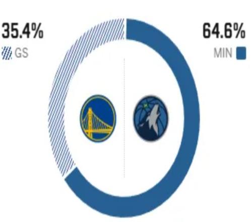 這是兩隊本賽季的第二次交手,上一次在勇士主場的交鋒中,勇士以7分之差憾負,而此前的五次交手,勇士5戰全敗,劣勢非常明顯。賽前,美媒ESPN對本場比賽進行了勝率預測,勇士隊勝率僅有35.4% ,劣勢明顯,森林狼隊勝率則高達64.6% 。