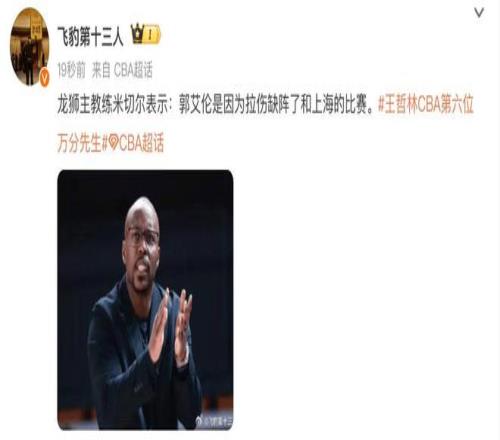首先第消息,分享一下郭艾倫復出又拉傷的情況。最近廣州隊迎來了對戰強隊上海隊的比賽,郭艾倫在賽前還和張鎮麟他們打了招呼,結果在比賽開始之后卻沒有登場。最終廣州隊是大比分輸給了上海隊,遭遇潰敗。