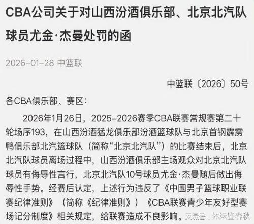 很快中籃聯開始介入調查,最終認定山西主隊球迷存在明顯侮辱性言行,違反聯賽相關規定。同時,中籃聯的公告也指出,在遭遇侮辱之后,杰曼作出了不恰當的手勢回應,這個動作同樣被認定為違規,對聯賽形象造成了負面影響。到了這里,其實很多人已經預料到會是“雙罰”的結局,但中籃聯的處罰決定還是引發了不小爭議。