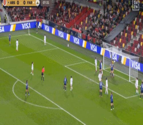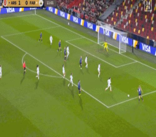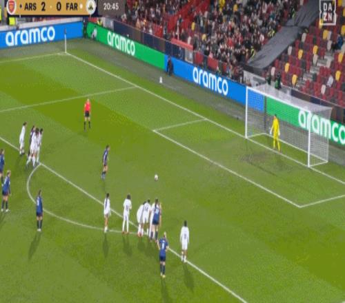 第21分鐘,雷杜阿尼手球送點,馬里奧娜-卡爾登泰操刀命中,阿森納女足3-0!