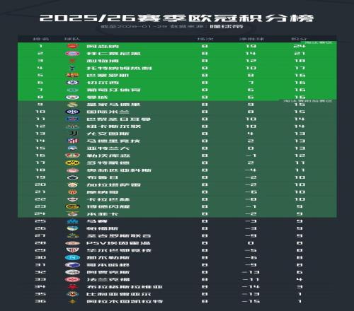北京時間1月29日凌晨,2025/26賽季歐冠結束了聯賽階段的全部比賽,最終的晉級形勢全部得到確認。