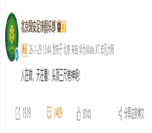 球圈趙探長:北京國安硬氣啊!朋友圈刷屏了,熱搜榜也第一了 ???