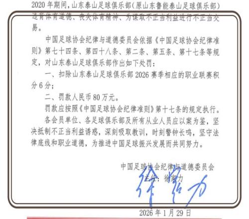 山東泰山被扣掉了6個聯賽積分,同時被罰80萬。作為專項整治的主要球隊之一,這樣的處罰已經完全可以接受了。從之前的首批處罰名單,再到如今的第二批,各種細節和問題全部曝光。