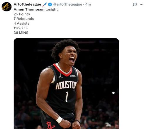 此役阿門-湯普森全場比賽36分鐘,23中11,罰球3中3,拿到火箭最高的25分外加7分4籃板4搶斷1蓋帽,命中率47.8%,整個第四節7中1拿2分,他出手是火箭最多。