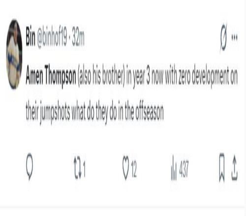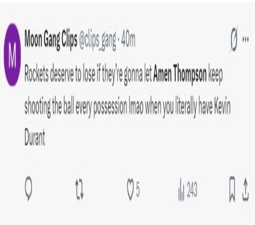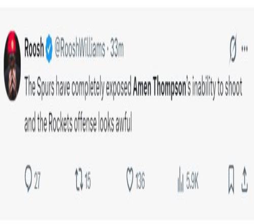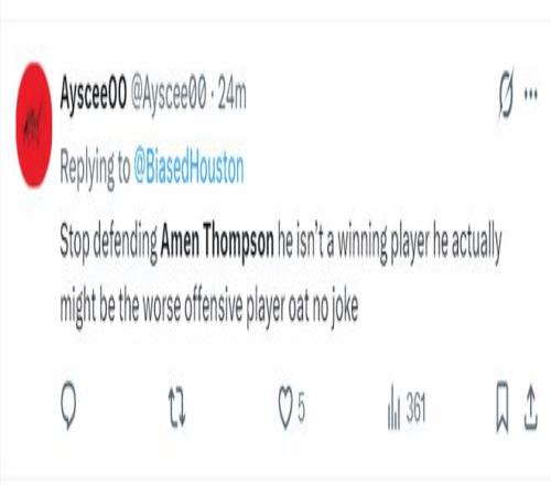 火蜜:阿門-湯普森在進攻方面太沒用了。他完全破壞了球的運轉節奏,因為他在球場上的任何位置都不具備威脅性,只有在籃下才有威脅。