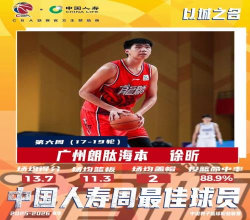 在那一周的3場比賽里,徐昕幫助廣州龍獅男籃拿到全部3場勝利,自己場均出戰28分鐘,貢獻13.7分11.3籃板2封蓋,投籃命中率高達88.9%,罰球命中率也有90%,幾乎不浪費任何得分機會。