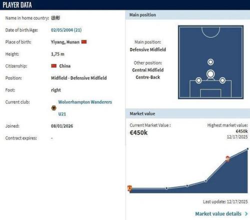 21歲的中國U23國家隊隊長、湖南籍球員徐彬,已正式完成轉會,加盟英超狼隊足球俱樂部的U21梯隊,其最新身價被評估為45萬歐元。這標志著又一位中國青年才俊,踏上了充滿挑戰的歐洲足壇征程。