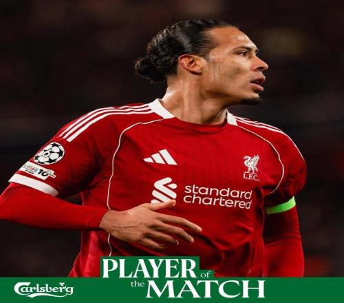 利物浦官方宣布,范戴克當選球隊與卡拉巴赫一役隊內最佳球員。