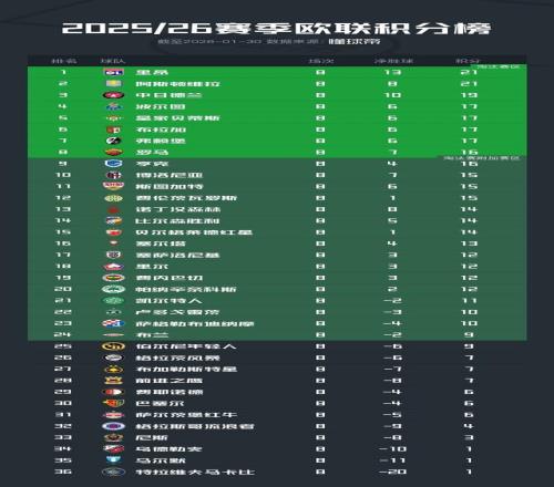 北京時間1月29日凌晨,2025/26賽季歐聯杯結束了聯賽階段的全部比賽,最終的晉級形勢全部得到確認。