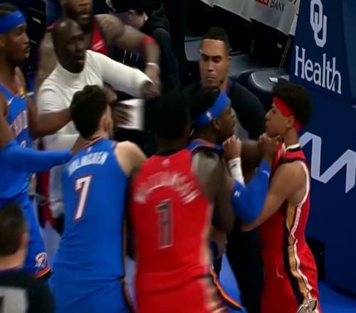 比賽中最后一攻時(shí),費(fèi)爾斯上籃與雷霆悍將多爾特有身體糾纏,多爾特推搡費(fèi)爾斯后,兩人開始爆發(fā)沖突,互相揪著對方的衣領(lǐng),引發(fā)雙方球員大規(guī)模沖突。
