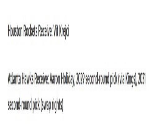 老鷹得到:霍勒迪+29年二輪簽+31年二輪簽互換