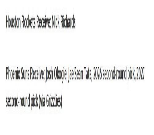 太陽得到:奧科吉+泰特+26年二輪簽+27年二輪簽。