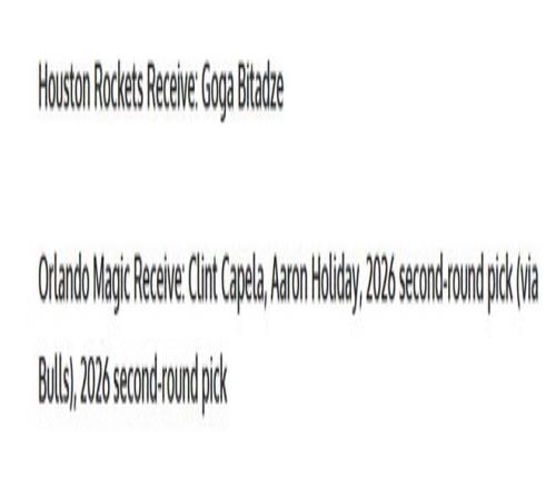 魔術得到:卡佩拉+霍勒迪+26年公牛二輪簽+26年火箭二輪簽。