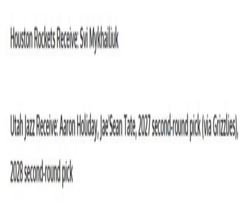 爵士得到:霍勒迪+泰特+27年二輪簽+28年二輪簽。