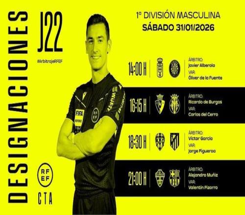 西班牙足協官方公布了周六4場西甲比賽的裁判安排,亞歷杭德羅-穆尼斯將執法巴薩客戰埃爾切。