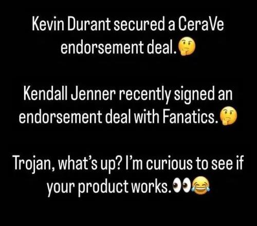 “凱文-杜蘭特拿下了CeraVe(潤膚乳)的代言?!?/p>